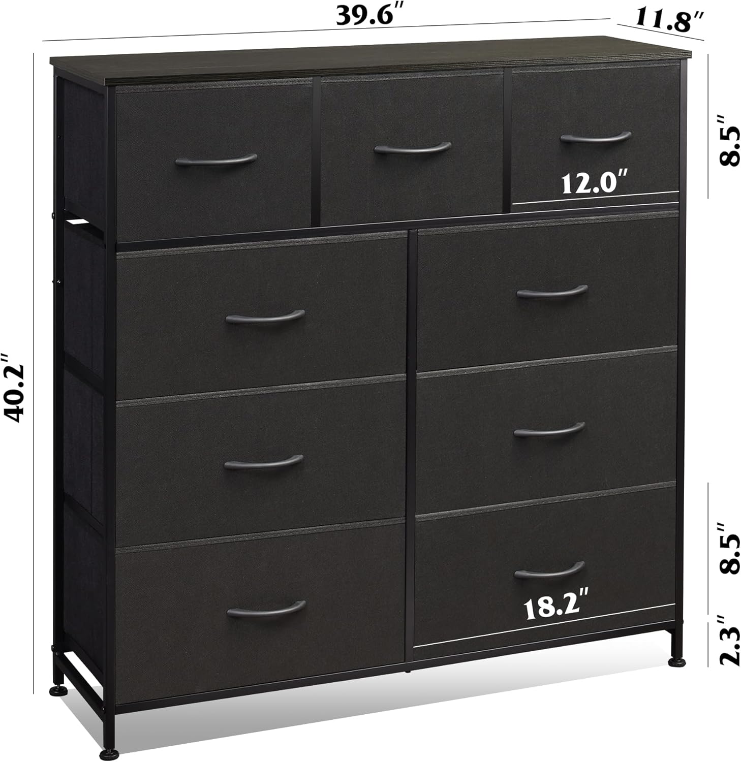 WLIVE 9-Drawer Dresser, Fabric Storage Tower for Bedroom, Hallway, Entryway, Closet, Tall Chest Organizer Unit with Fabric Bins, Steel Frame, Wood Top, Easy Pull Handle, Charcoal Black